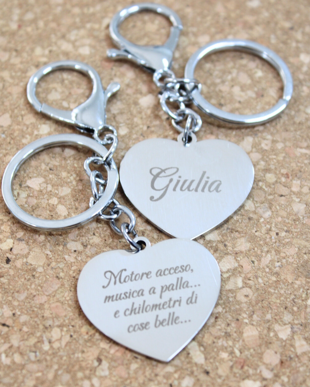 Portachiavi in acciaio da personalizzare con un'incisione di una frase o una foto.